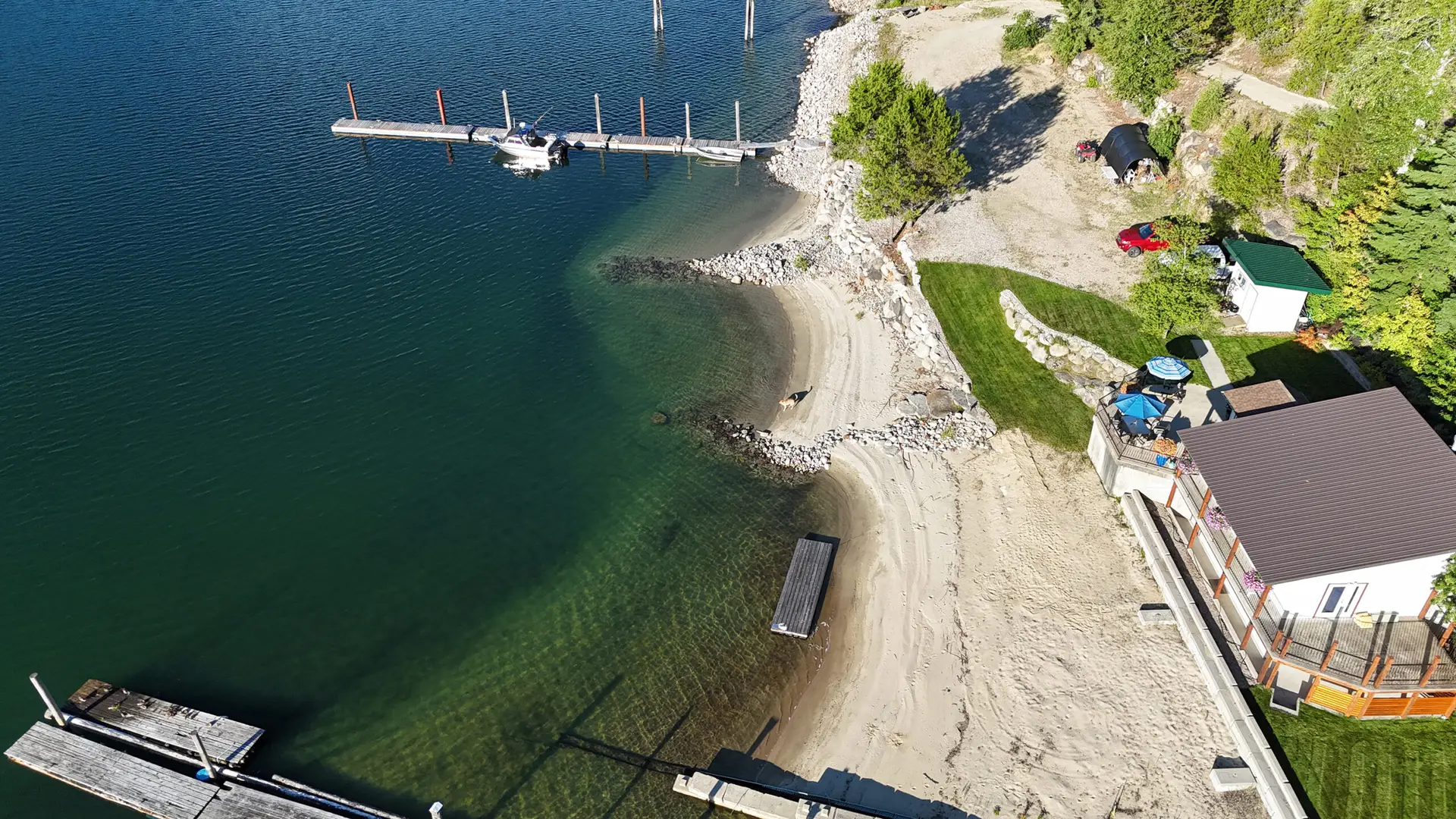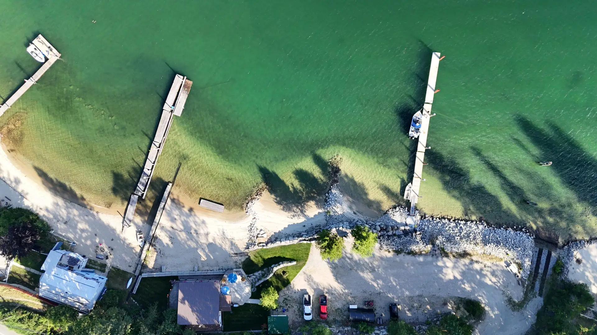 - Sandy beach with 300 ft. of lakefront.